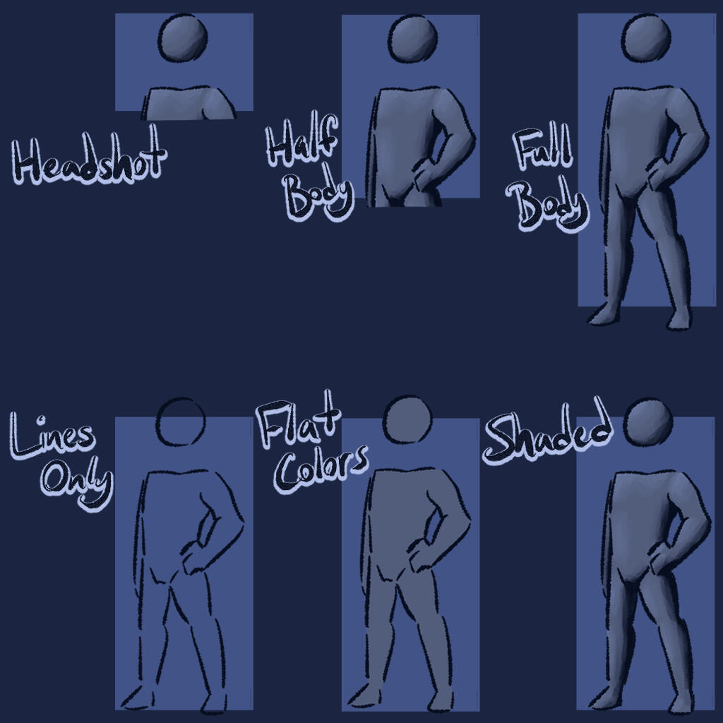 I don't really have bases for different emotes, so you can point to ones I've made, emotes you like to use, or some random image.Emotes will always be flat colors with lineart to make sure when they're tiny, they still read well.